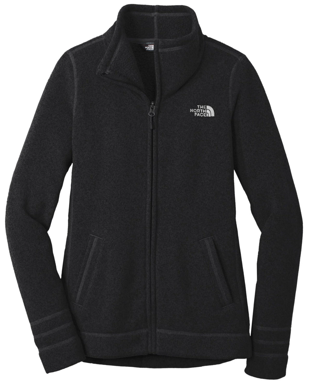 Use the fleece hand pockets for ease and warmth when walking to work or out on a hike with friends. We arenβt kidding when we say this is the staple fleece you need in your closet this year. The jacket features a contrast embroidered North Face logo on the left chest. Work with Thread Logic to customize your fleece by embroidering your company logo or name on the right chest!