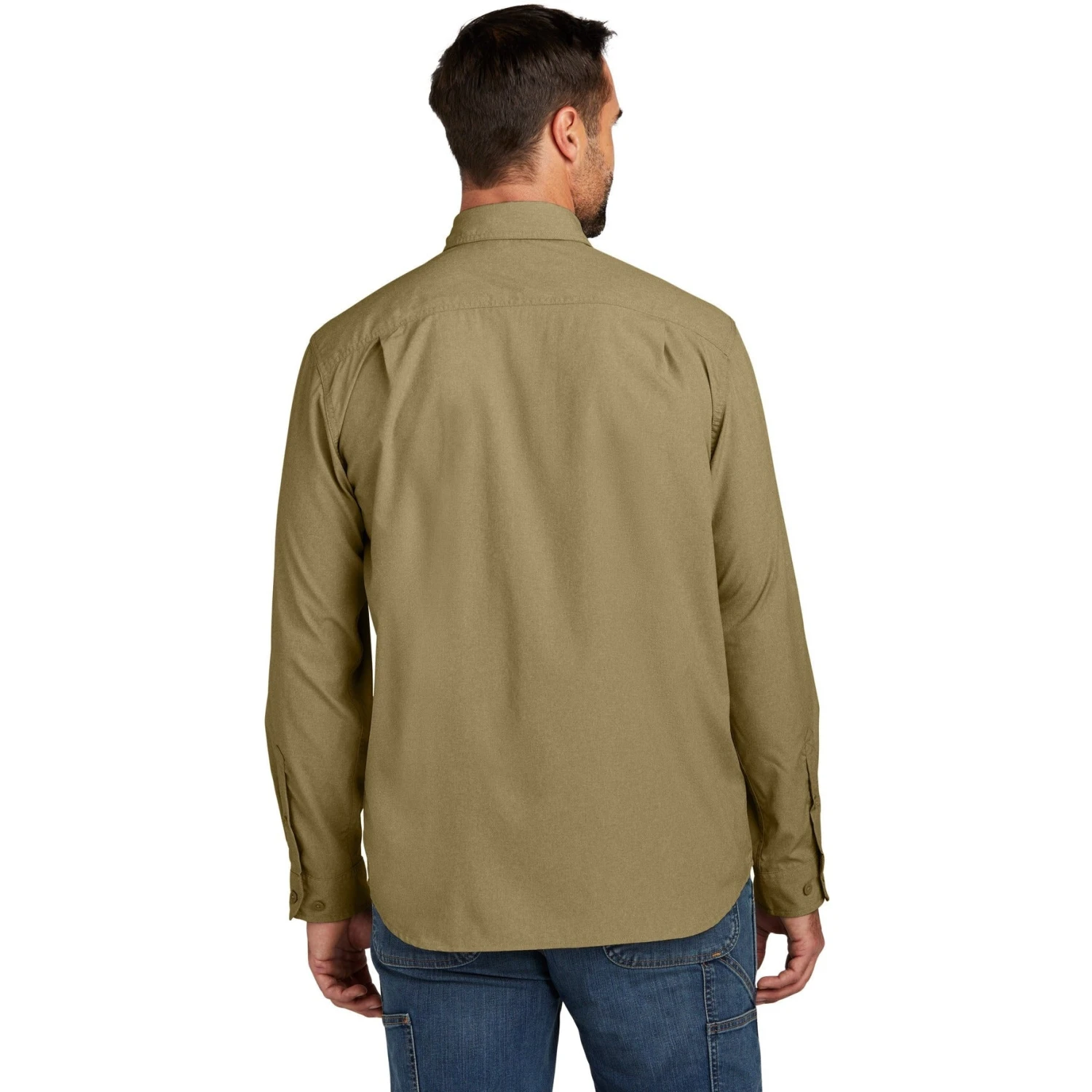 The Carhartt Force Solid Long Sleeve Shirt is the ultimate workwear essential for any outdoor enthusiast or professional. Designed to handle the toughest conditions, this shirt features a sun-smart UPF 50+ rating that protects you from harmful UV rays. The 2.9-ounce poly/nylon chambray fabric is lightweight, quick-drying and equipped with FastDry technology that keeps you cool and comfortable all day long. The Rugged Flex technology provides ease of movement and the button-down collar and back yoke shoulder pleats offer a classic look. The shirt also features two chest pockets with mitered flaps and button closures, as well as two-button adjustable cuffs with extended plackets. The Carhartt label sewn on the left chest pocket adds a touch of style to this functional and durable shirt. The relaxed fit ensures maximum comfort for a full day of work.