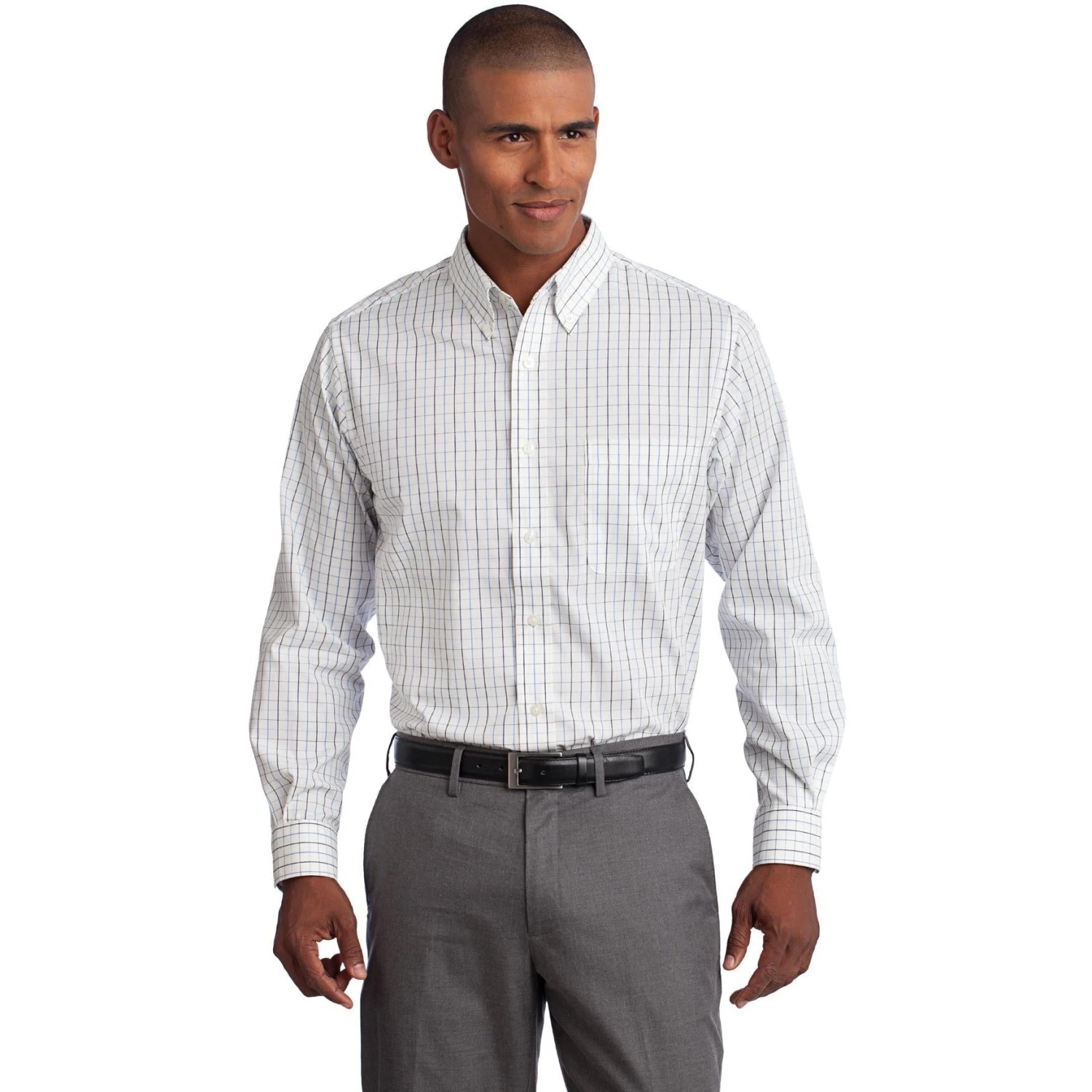 With a classic tattersall pattern, this poplin shirt adds variety to your work wardrobe. Specially finished for wrinkle resistance, it stays crisp from breakfast meetings to after-hours mixers.3.5-ounce, 60/40 cotton/polyButton-down collar with bias-cut detailsBack box pleatDyed-to-match buttonsLeft chest pocketRounded adjustable cuffs