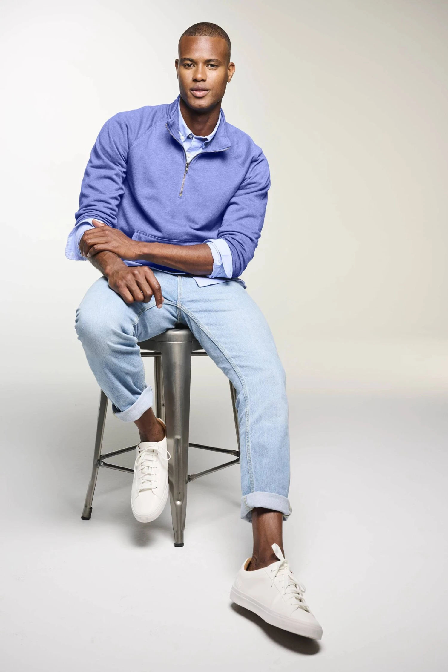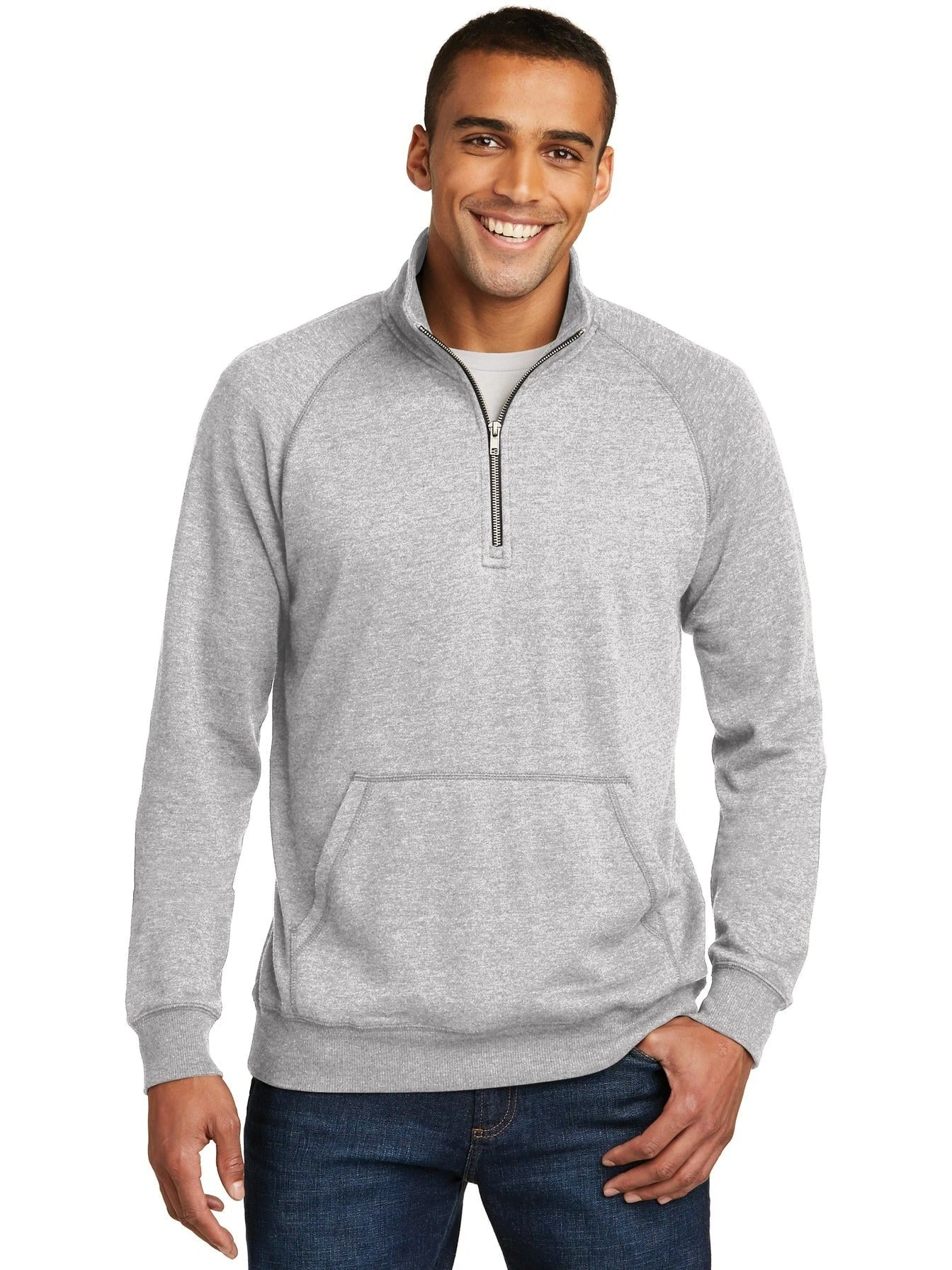 The District Lightweight Fleece 1/4-Zip is a comfortable and cozy men’s casual sweatshirt made of a resilient and soft 55% Combed Ring-Spun Cotton and 45% Polyester blend fabric. This regular fit garment is the perfect staple piece for both casual wear and sports occasions as its classic cut is met with high standards of production and all details, from the zip-up high neck to the front pouch pocket, are extremely durable.