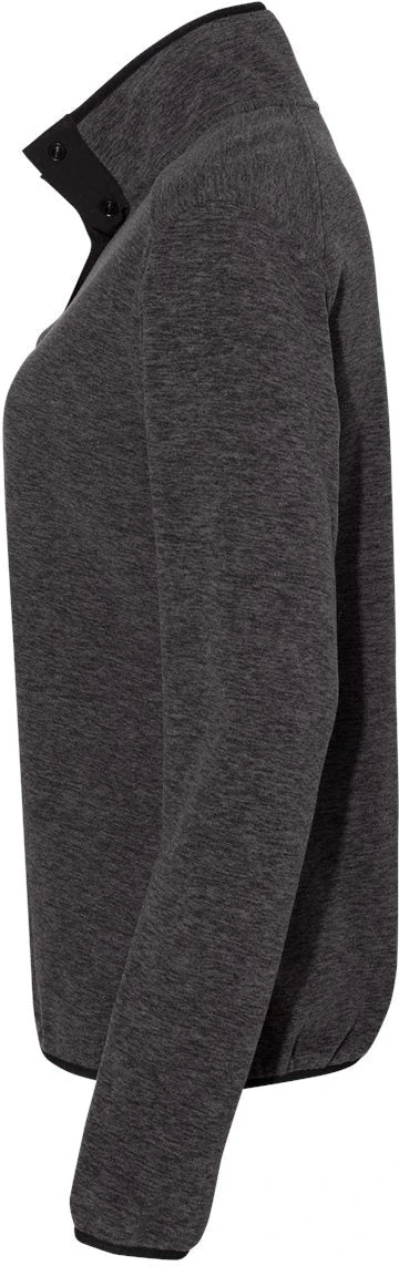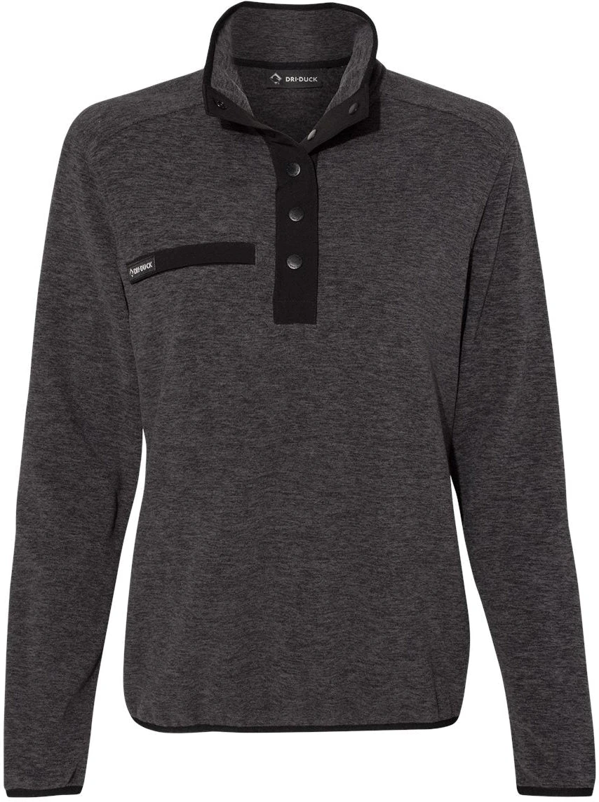 The Dri Duck Ladies Aspen Mélange Mountain Fleece Pullover is a comfortable and casual women’s long sleeve top made of a breathable and soft 100% polyester mèlange heather Mountain Fleece with 90% Polyester and 10% Spandex dews placket and chest pocket inserts.
