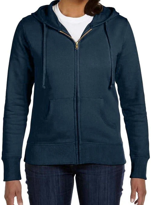 The Econscious Ladies 9 oz. Organic/Recycled Full-Zip Hood is a comfortable and soft women’s hoodie made of a premium 80% certified organic cotton, 20% recycled polyester blend fabric.
