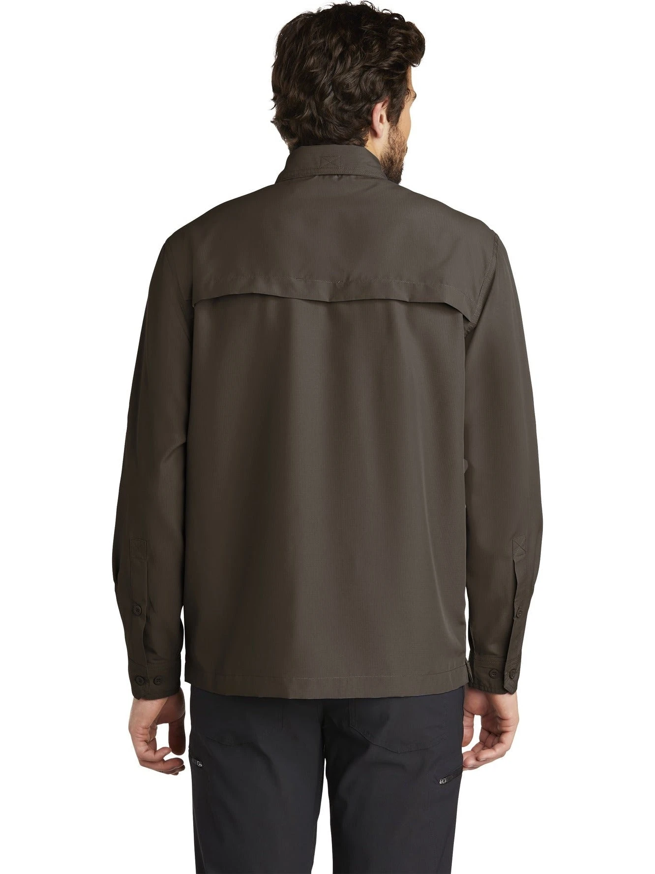 The Eddie Bauer Long Sleeve Performance Fishing Shirt is a sturdy yet comfortable men’s shirt made of a resilient and breathable 100% polyester ripstop fabric with a 100% polyester mesh upper back lining. The paneled construction of this garment, along with details like the cape back with mesh ventilation, provides a sleek fit. All details, from the durable stitching to the sturdy button closure, are a testament to the state-of-the-art construction of this garment.