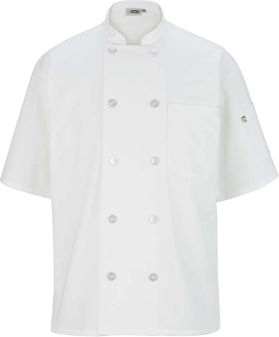 Classic full cut short sleeve chef coat with 10 matching buttons.