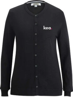 Soft and delicate button-front cardigan has a trendy drop-tail and contrasting interior tail.