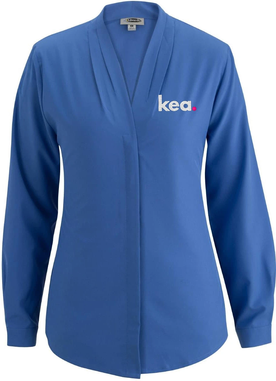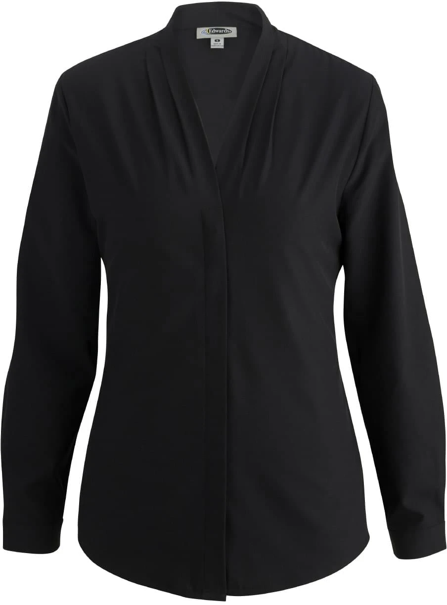 The Edwards Ladies V-Neck Blouse is a comfortable and durable yet classic and elegant women’s blouse made of a resilient and breathable 88% Polyester and 12% Spandex stretch woven fabric.