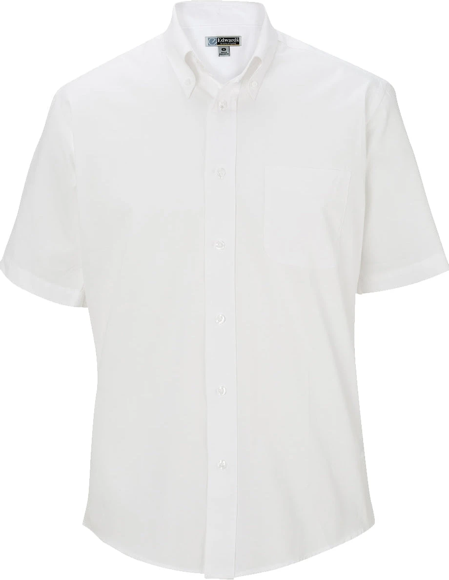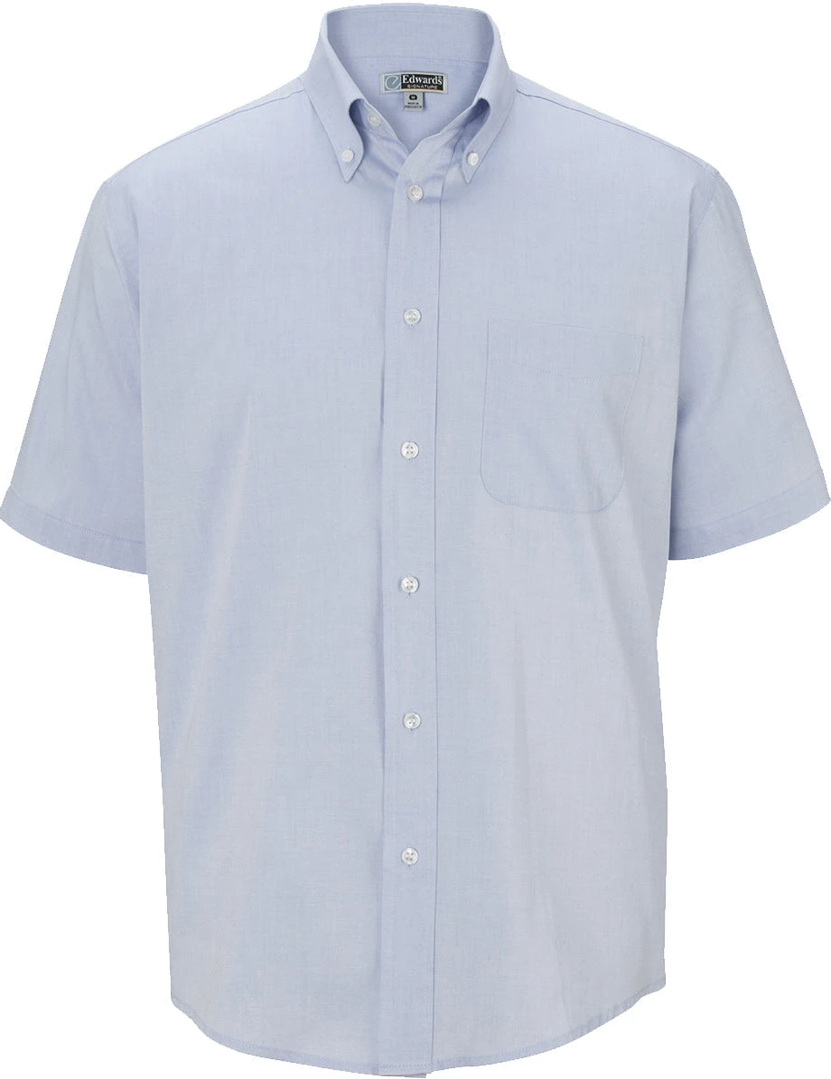 This men’s pinpoint short sleeve oxford dress shirt offers comfort and style.