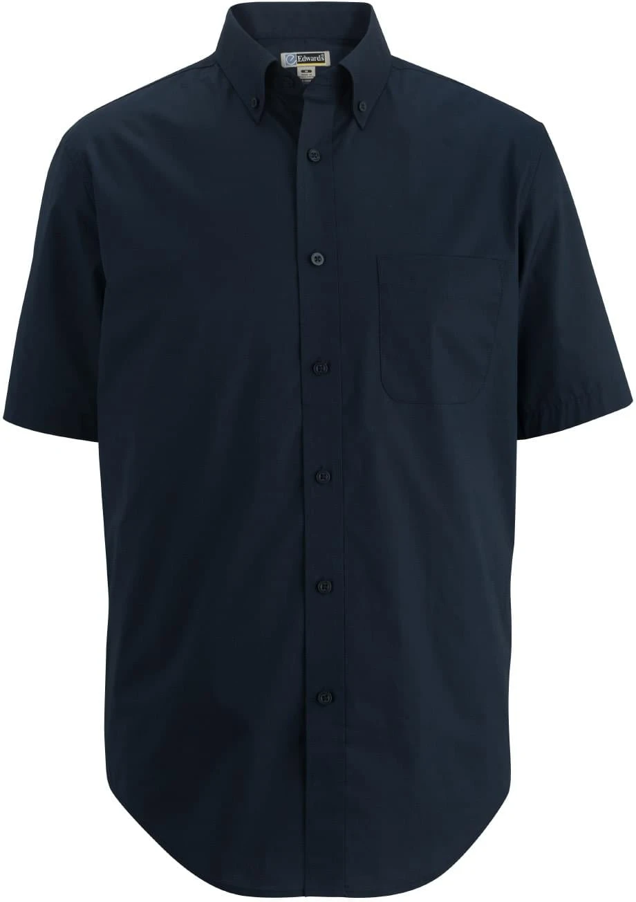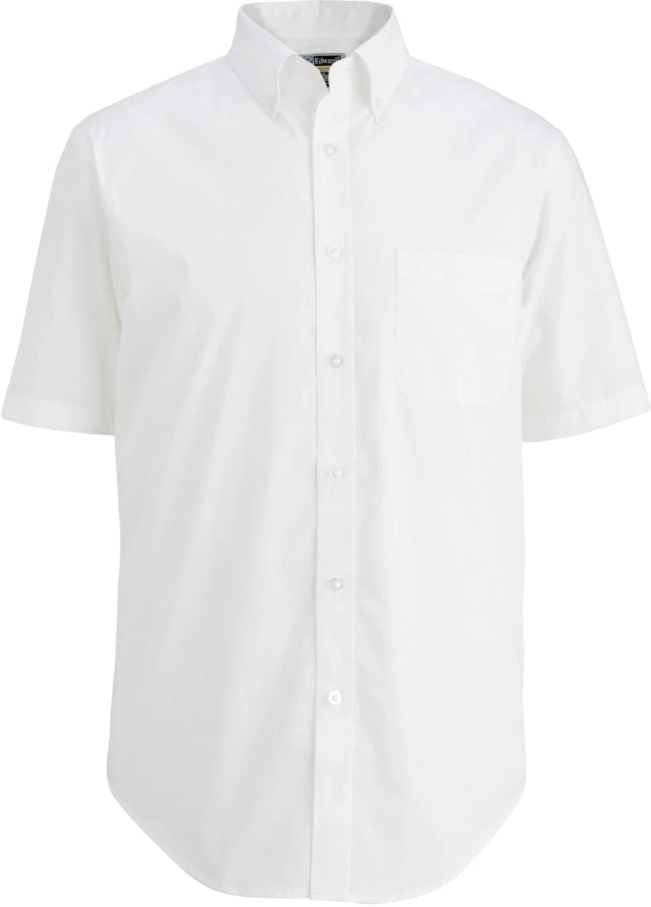 Men’s short sleeve poplin shirt boasts a traditional fit and comfort stretch for added movement.
