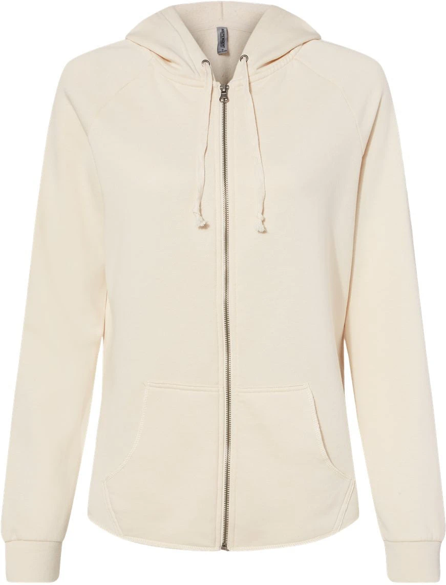 Introducing the Independent Trading Co. Ladies California Wave Wash Full-Zip Hooded Sweatshirt. This sweatshirt is durable, comfortable and is perfect for your company. The sweatshirt is made from ringspun cotton and polyester and features a standard fit. A truly timeless piece that all ladies will enjoy wearing any day of the week. The perfect sweatshirt for embroidering your company name or logo on.