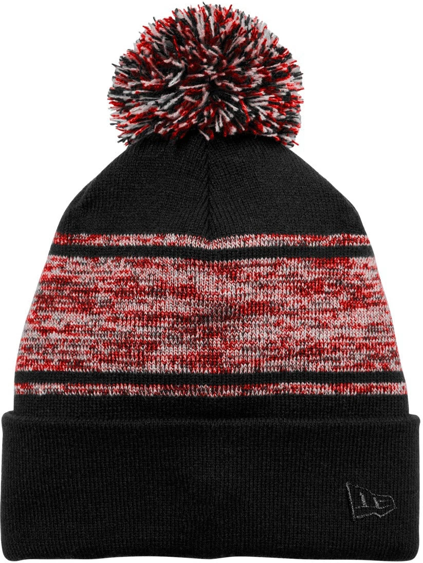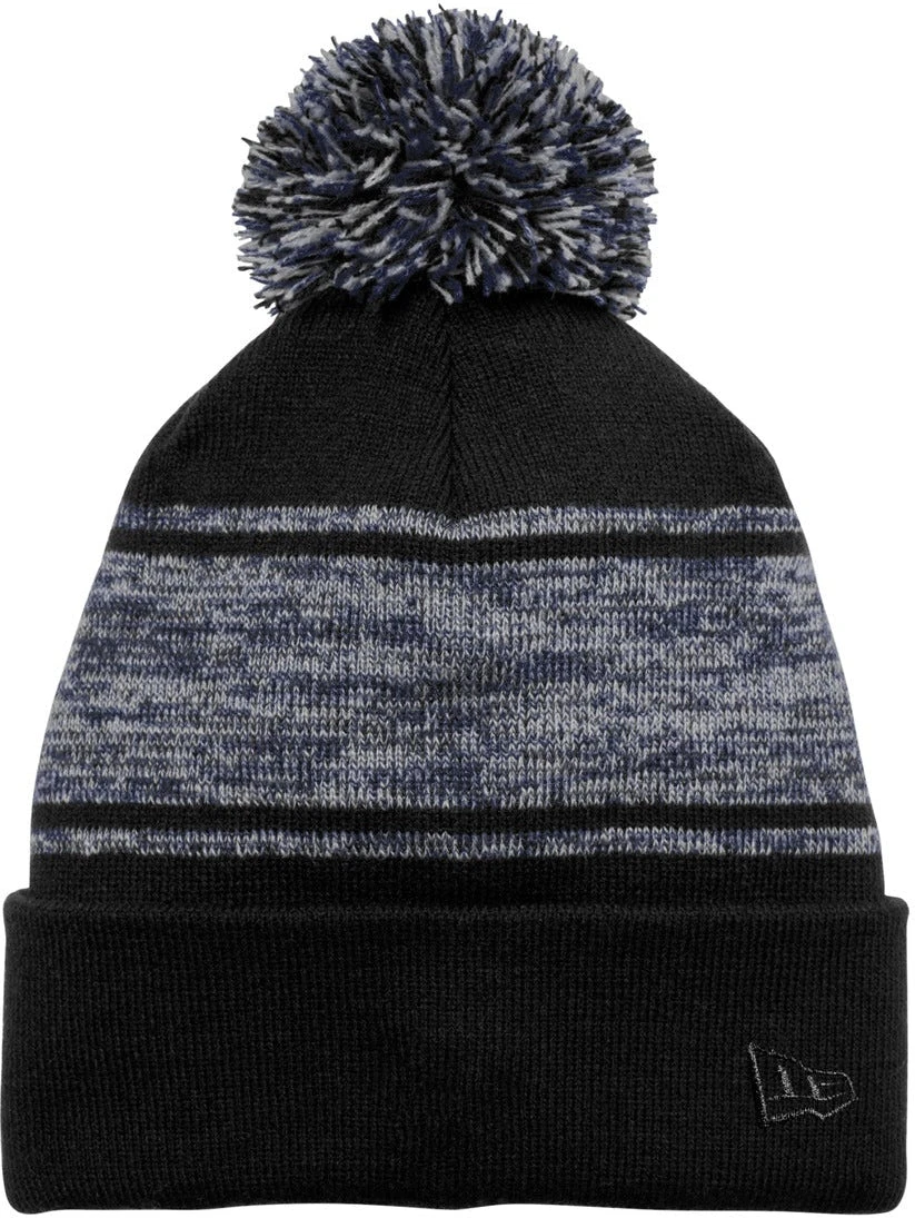 Three contrast stripes give a retro nod to this pom beanie, while the marled yarns put it right on-trend. 100% acrylicTonal embroidered New Era flag