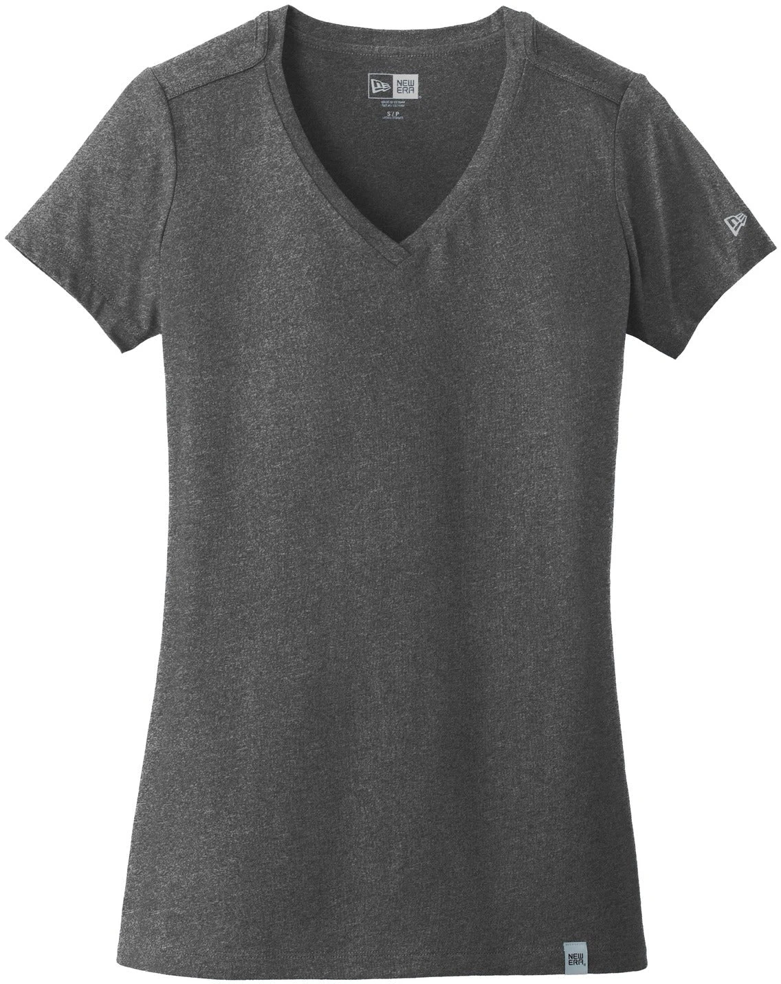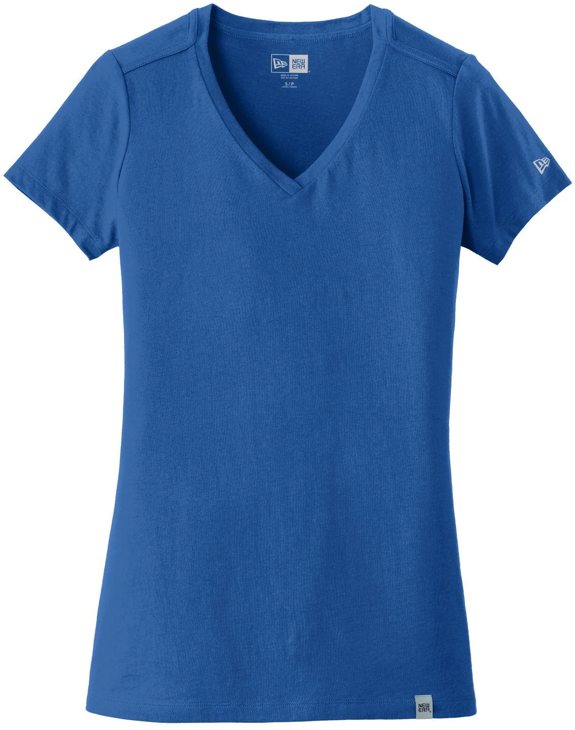 This New Era Ladies Heritage Blend V-Neck Tee is a great tee shirt for everyday wear. The short sleeved women’s tee shirt is made out of a ring spun combed cotton and poly material with a crossover V-neck material. The heat transfer New Era flag logo is visible on the left sleeve of the shirt and there is a woven New Era badge at the hem. Remember when you are ordering that this shirt does run true to size.