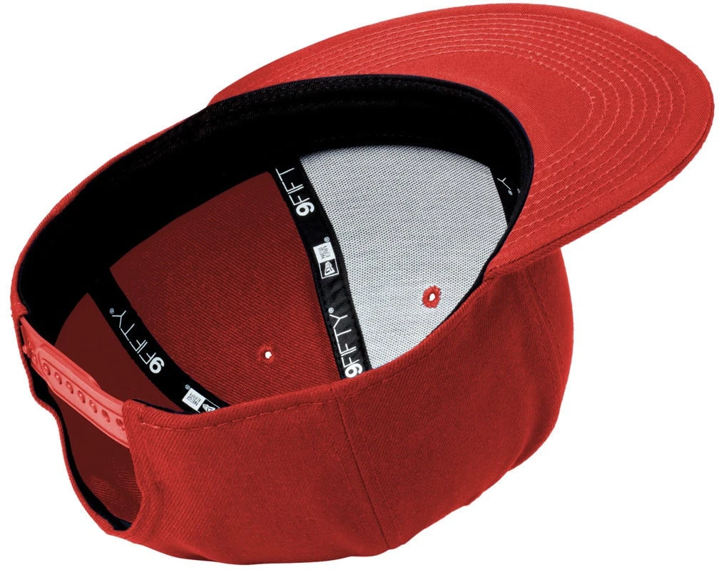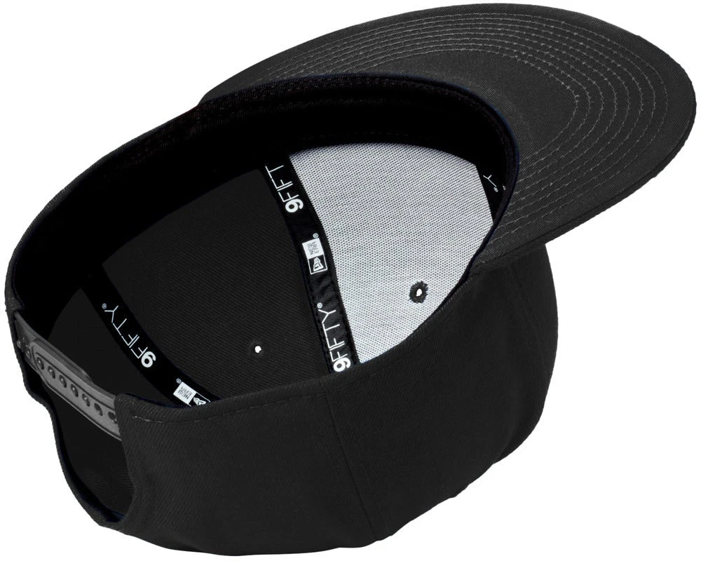 The successor to the cap that made New Era famous-re-fashioned with an increased crown depth and a flatter-sitting bill. 100% polyesterStructuredHigh-profile7-position adjustable snap closure9FIFTY FIT: Features a classic, throwback look with a flat visor that can curve with a full crown. Includes a structured front panel for stability and an open back with snapback closure.