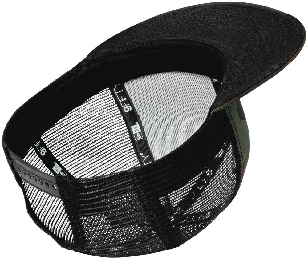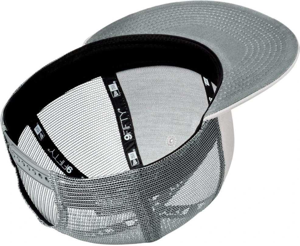 This reinvented trucker is on-trend with its structured, high-profile look. 100% cotton twill front panels and bill, 100% polyester mesh mid and back panelsStructuredHigh-profile7-position adjustable snap closure9FIFTY FIT: Features a classic, throwback look with a flat visor that can curve with a full crown. Includes a structured front panel for stability and an open back with snapback closure.