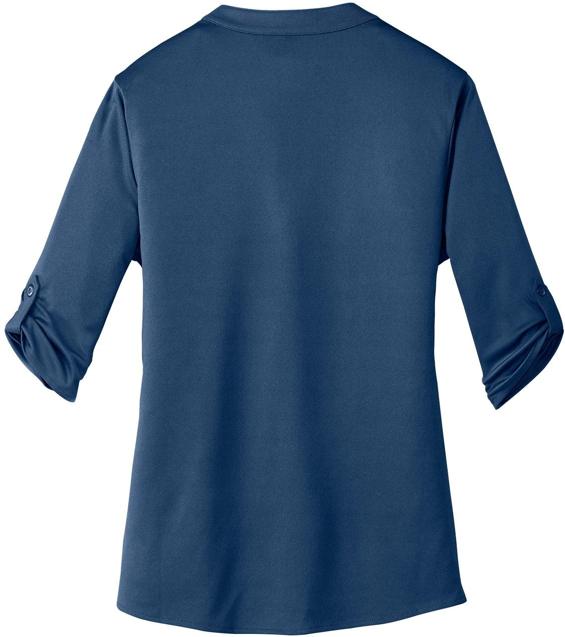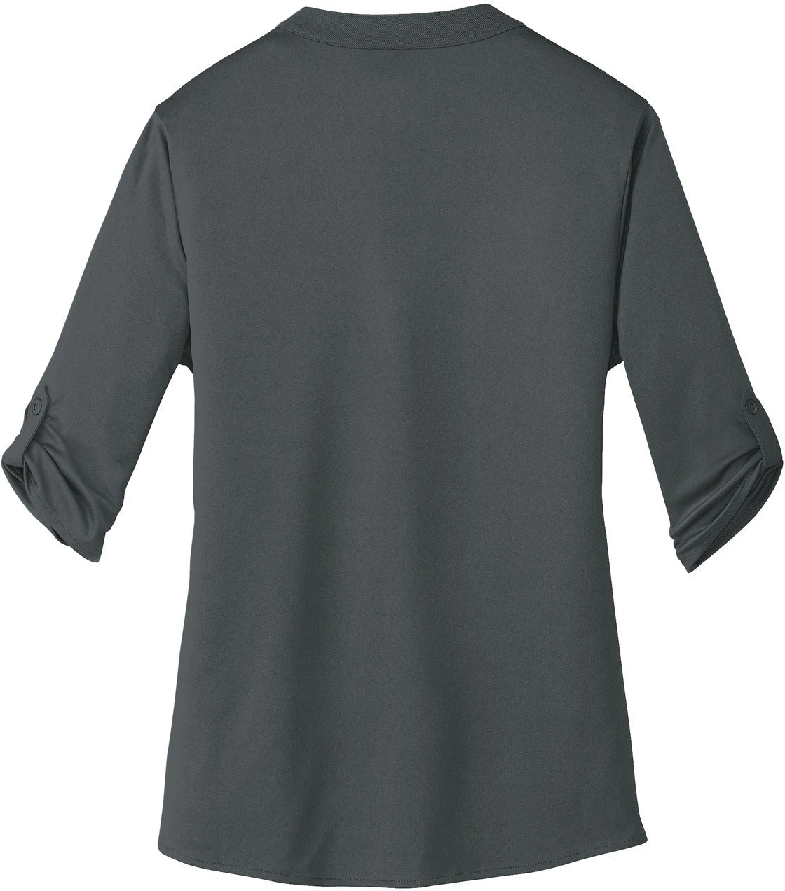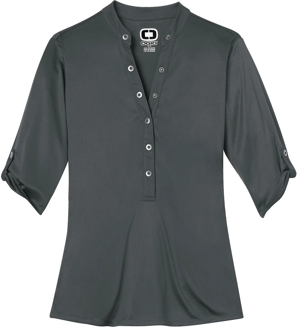 This OGIO Crush Henley is a stylish way to liven up your everyday work attire. The women’s henley shirt is made out of a one hundred percent poly interlock material. The 3/4 length sleeves and 6 snap pique placket offer an extra flair to your look. The shirt is available in several colors. Keep in mind that this particular shirt does run slightly smaller in size when you are ordering.