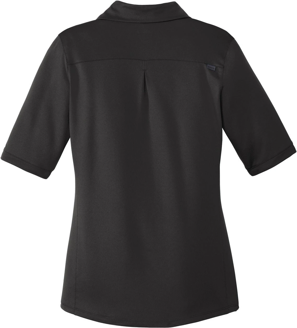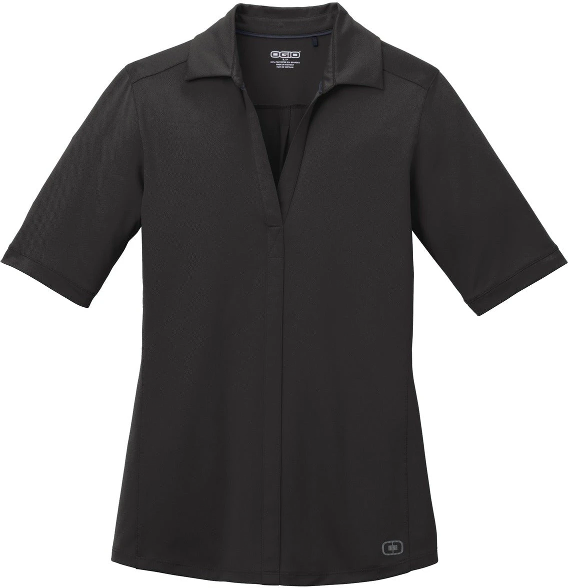 The OGIO Ladies Metro Polo is the perfect blend of style and performance. This polo shirt is made of 4.4-ounce, 95/5 polyester/spandex closed-hole mesh that has stay-cool wicking technology to keep you comfortable all day long. The self-fabric collar, open placket and piping give it a sophisticated look, while the pleat at the back yoke adds a touch of style. The shirt also features a woven OGIO badge at the right back shoulder, set-in open hem sleeves, and a textured O heat transfer at the left hem. With a tag-free OGIO heat transfer label, this polo is not only stylish but also comfortable to wear. Your custom logo will look great embroidered on this fashionable and functional polo shirt.