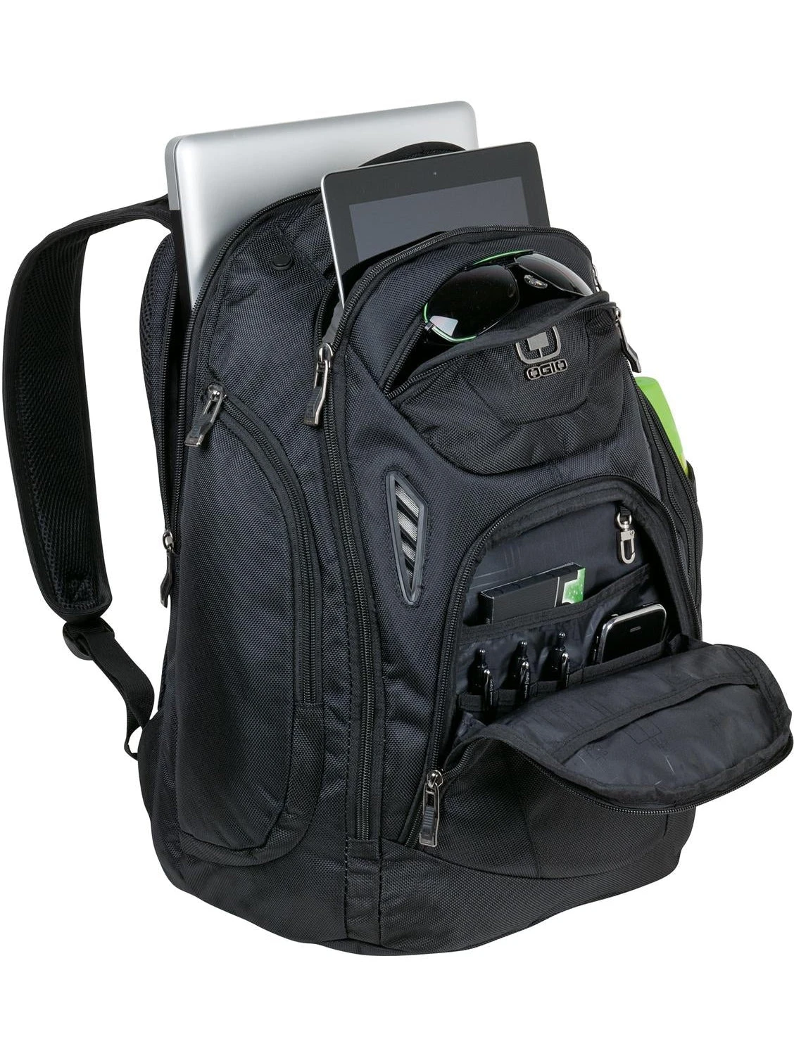 This OGIO Mercur Pack is perfect for coming and going from place to place. The backpack is made out of a rugged and durable poly material and has several zippered pouches in the front and sides to store your things. The bag is perfect for your electronics and fits most seventeen inch laptops. The overall dimensions of the bag are 19 inches by 13.5 inches by 8.5 inches.