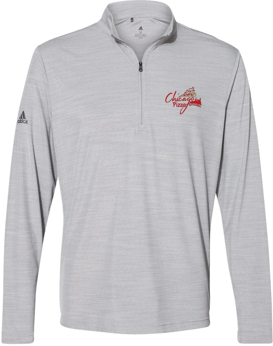 Looking for a pullover that gives you de comfort and elegance that you desire? Why not take home this beautiful piece of clothing that has the right shape and style to make you feel and look at your best? With our Adidas Lightweight Mélange QuarterZip Pullover, made with 100% recycled polyester interlock knit, you will feel the gentle touch of the fabric in your skin, and the lightweight will provide the freedom to go as far as you dream.