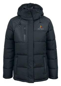 Insulated, water resistant puffer jacket engineered for extreme warmth in extreme weather. Waterproof YKK zipper on chest and front pockets. Removable and adjustable hood. It has 2 large Mesh inner pocket. Drawstring in hem and ladies drawstring in waist. Inner 2×2 rib cuff in sleeve. Has an embroidery zip.