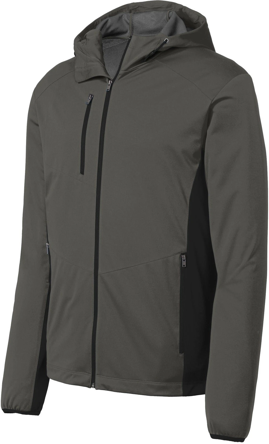 The Port Authority Active Hooded Soft Shell Jacket is the ultimate all-season performance jacket for your active pursuits. Made with a 100% polyester knit shell that is bonded to a water-resistant film insert and a 100% polyester mesh interior, this jacket offers excellent protection from the elements while allowing you to move freely and comfortably.