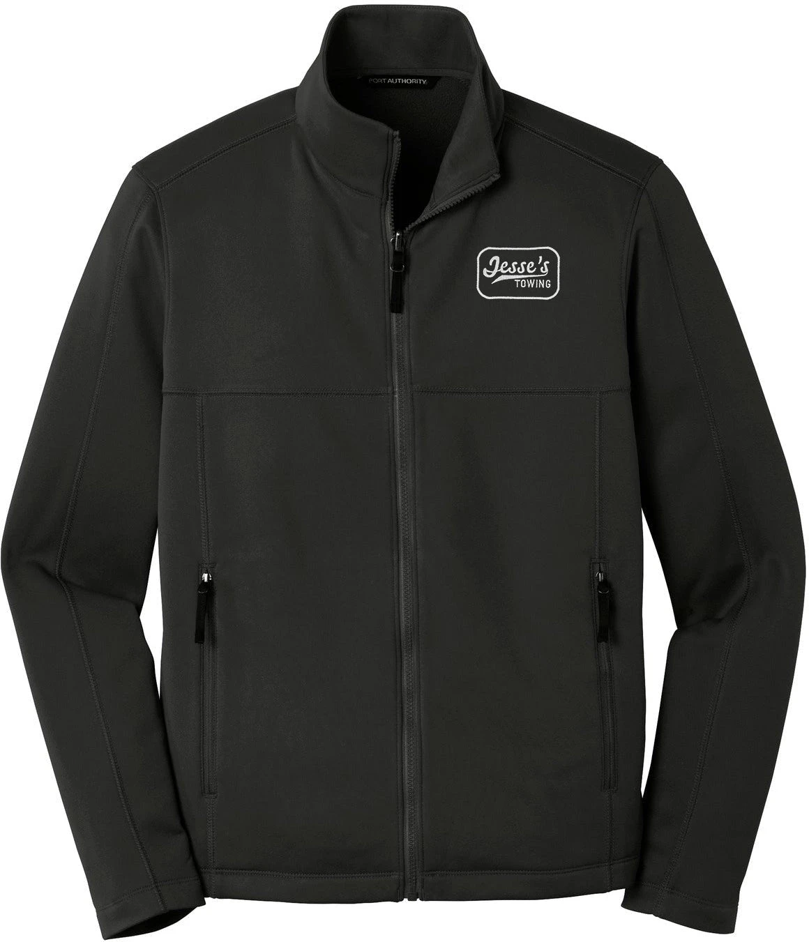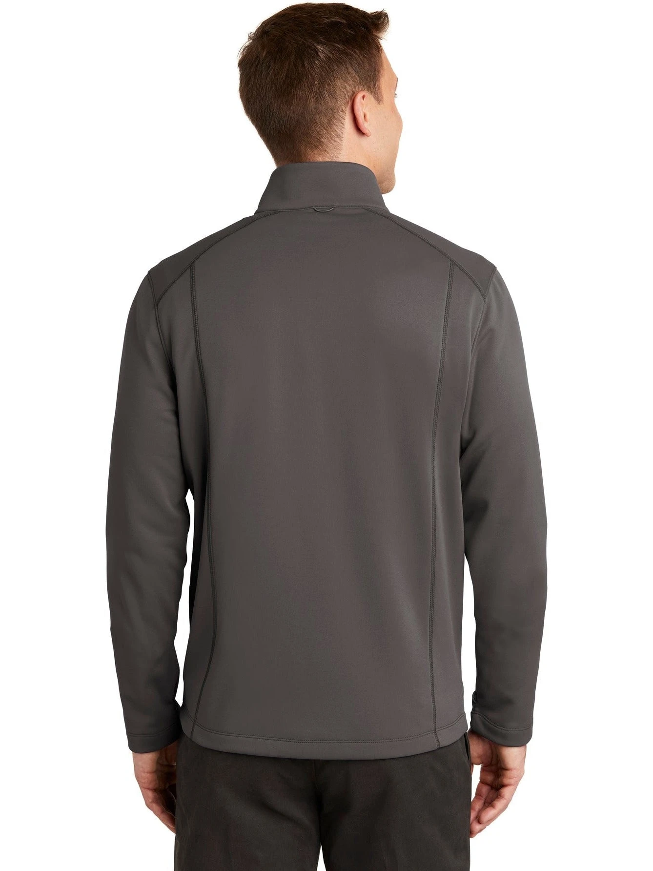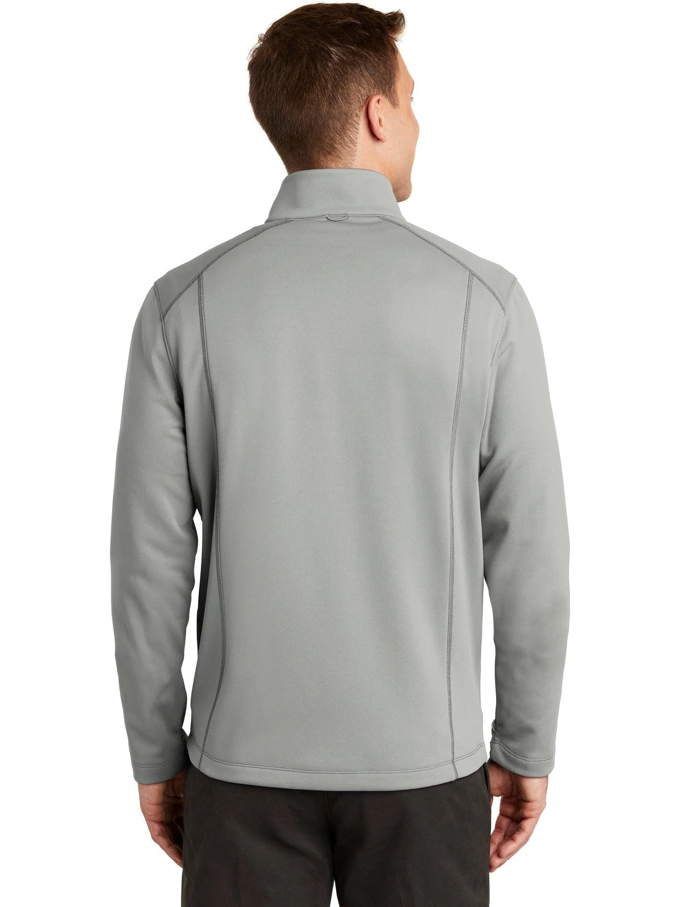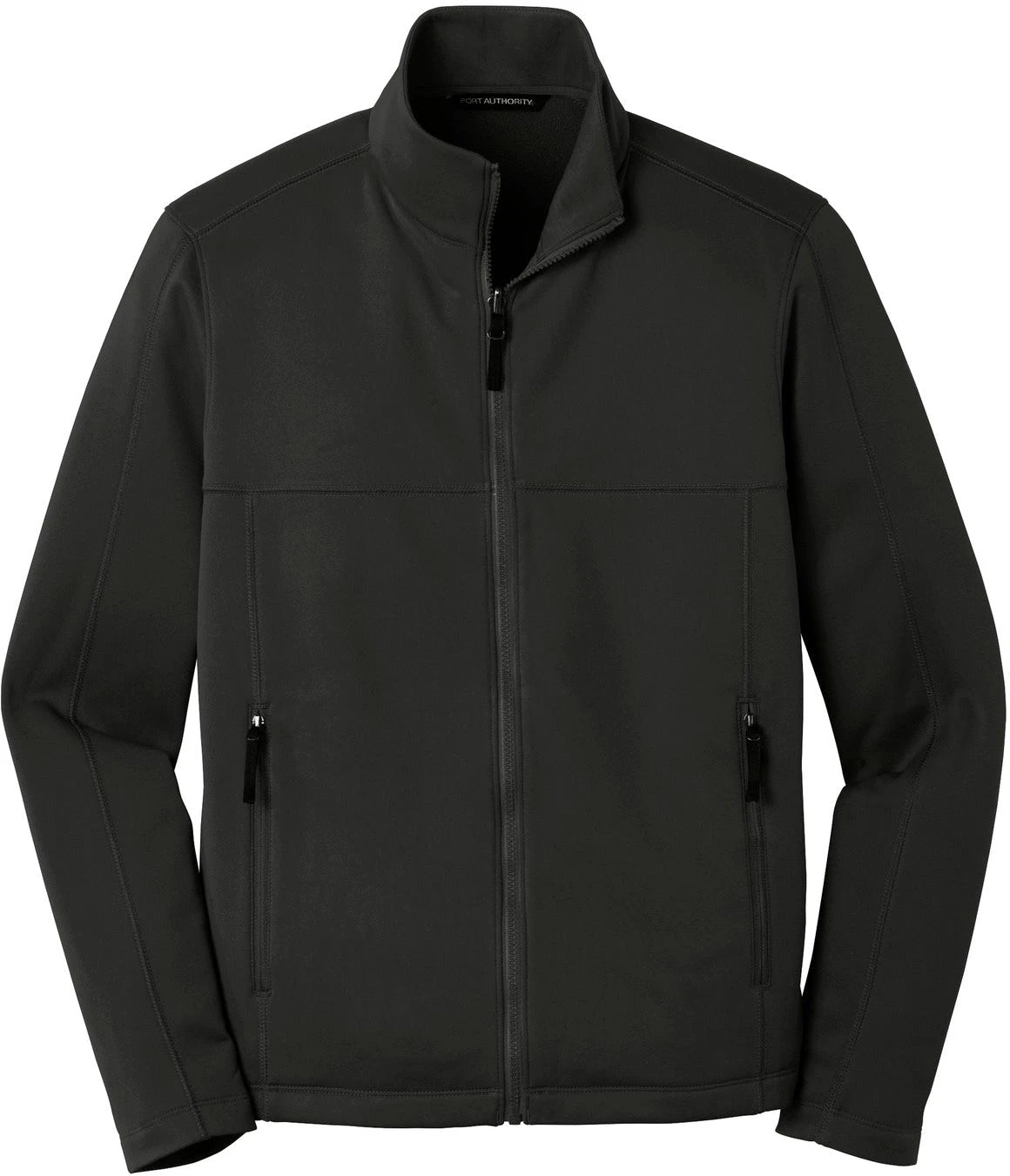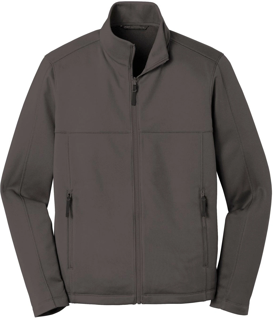 This Port Authority Collective Smooth Fleece Jacket is made out of 100% polyester fleece material. The jacket has a zip-through cadet collar and is made with a slightly longer length. The jacket can be customized to represent your brand or company by adding an embroidered name or logo. The jacket runs true to size and is available in grey and black colors.