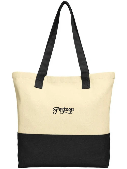 This versatile cotton tote has colorblock handles and bottom for on-trend style and a modern look.