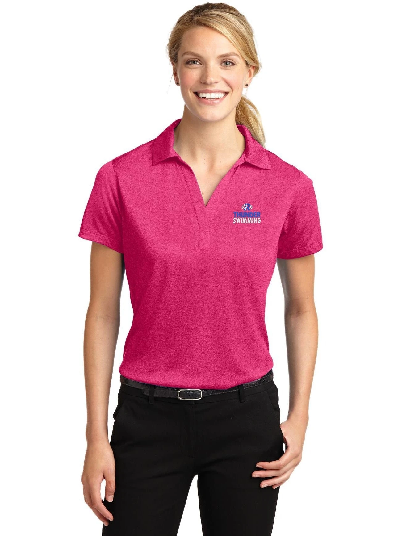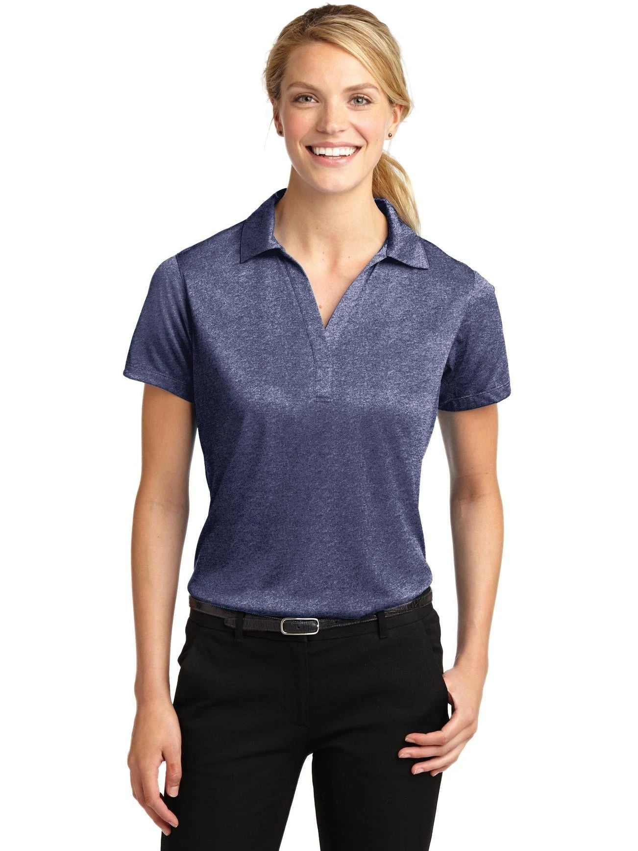 This Sport-Tek Ladies Heather Contender Polo is perfect for the casual day at the office or the work place. The shirt is made out of a one hundred percent polyester moisture wicking material that is both lightweight and breathable. You will stay cool, dry, and comfortable throughout the workday. The shirt is available in a variety of beautiful colors and runs true to size.