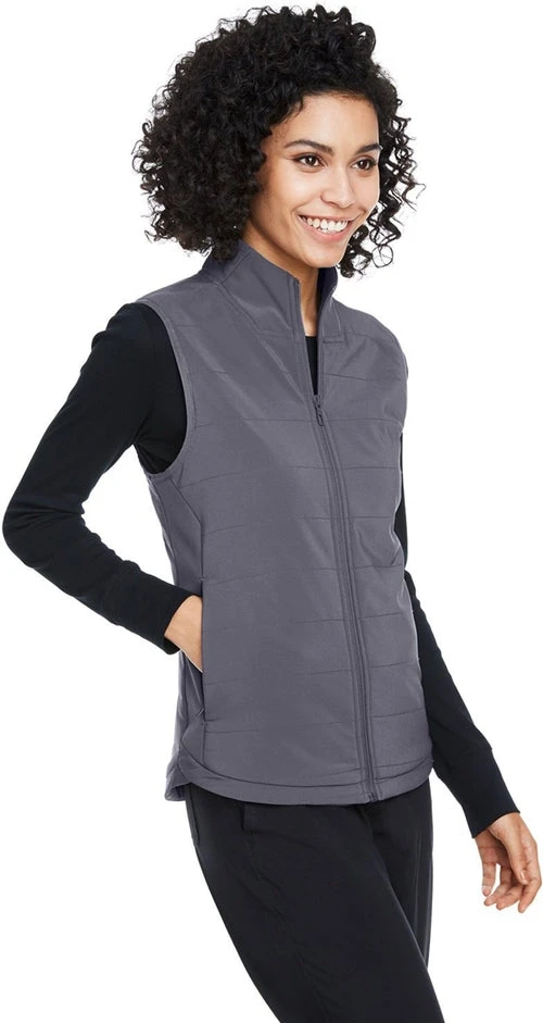 Women’s Spyder transit vests for sale! Vests are made of 90% polyester and 10% spandex. Fabric is pillow tech quilted and made of three layers: top, insulation, and base layers. Sizes do run slightly small so would recommend ordering one size up.