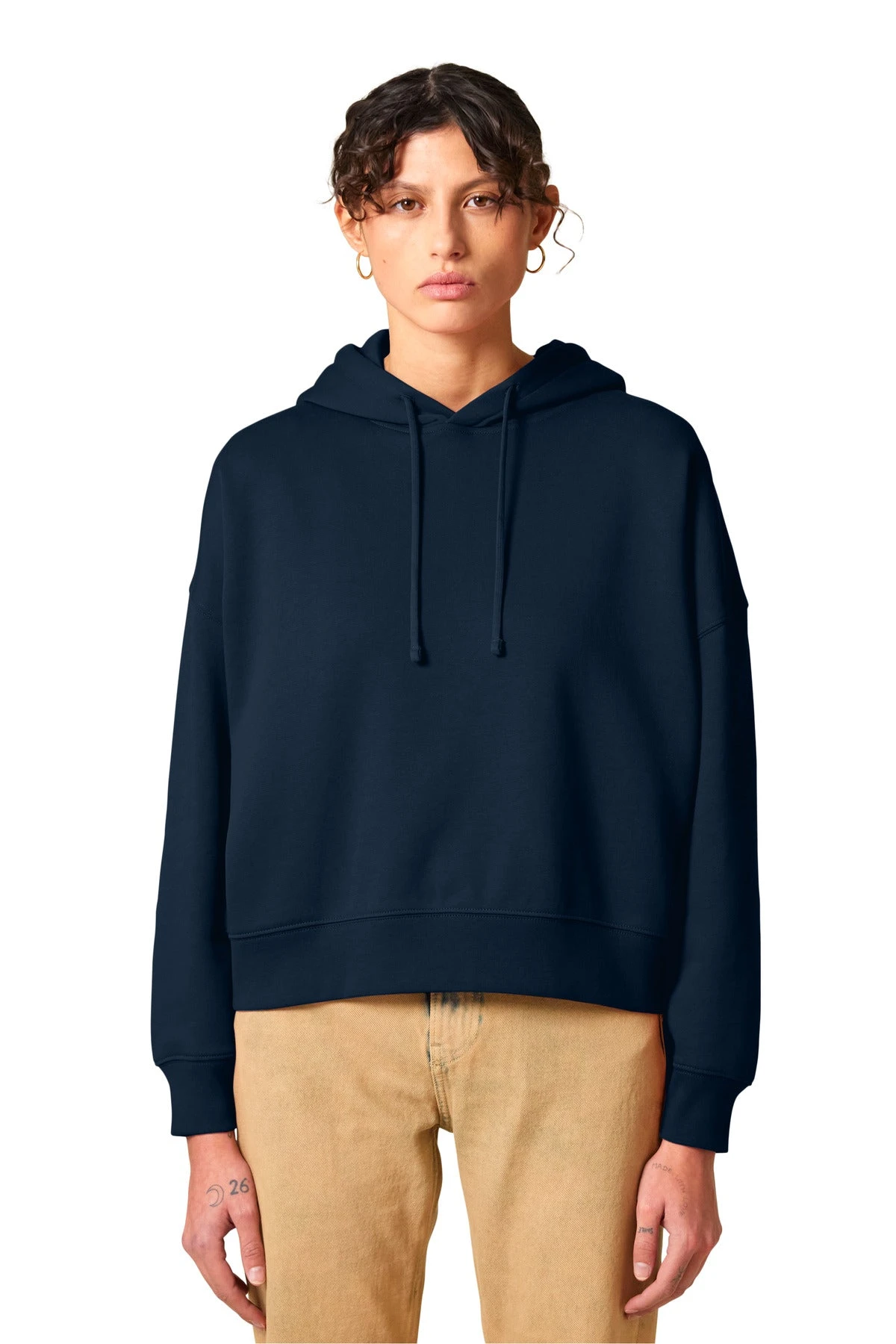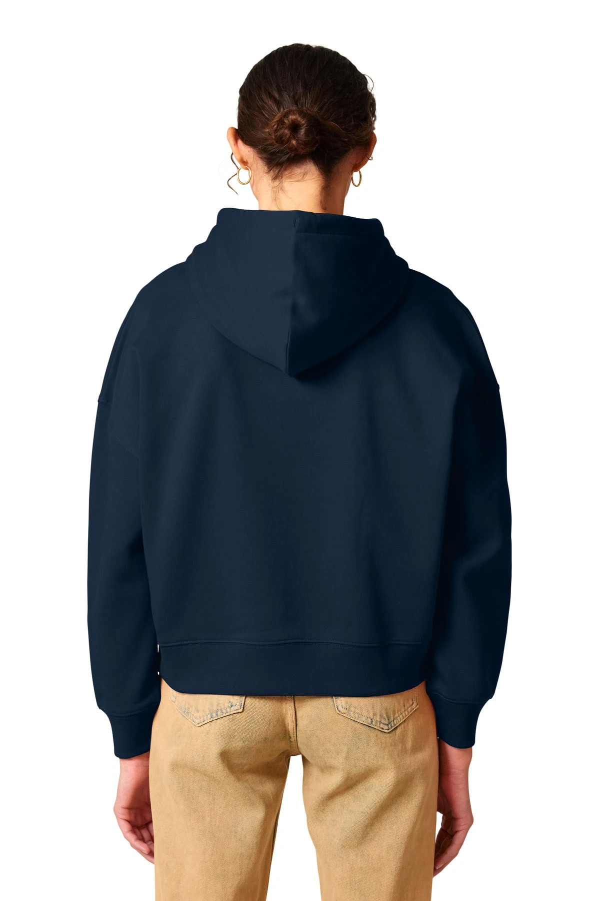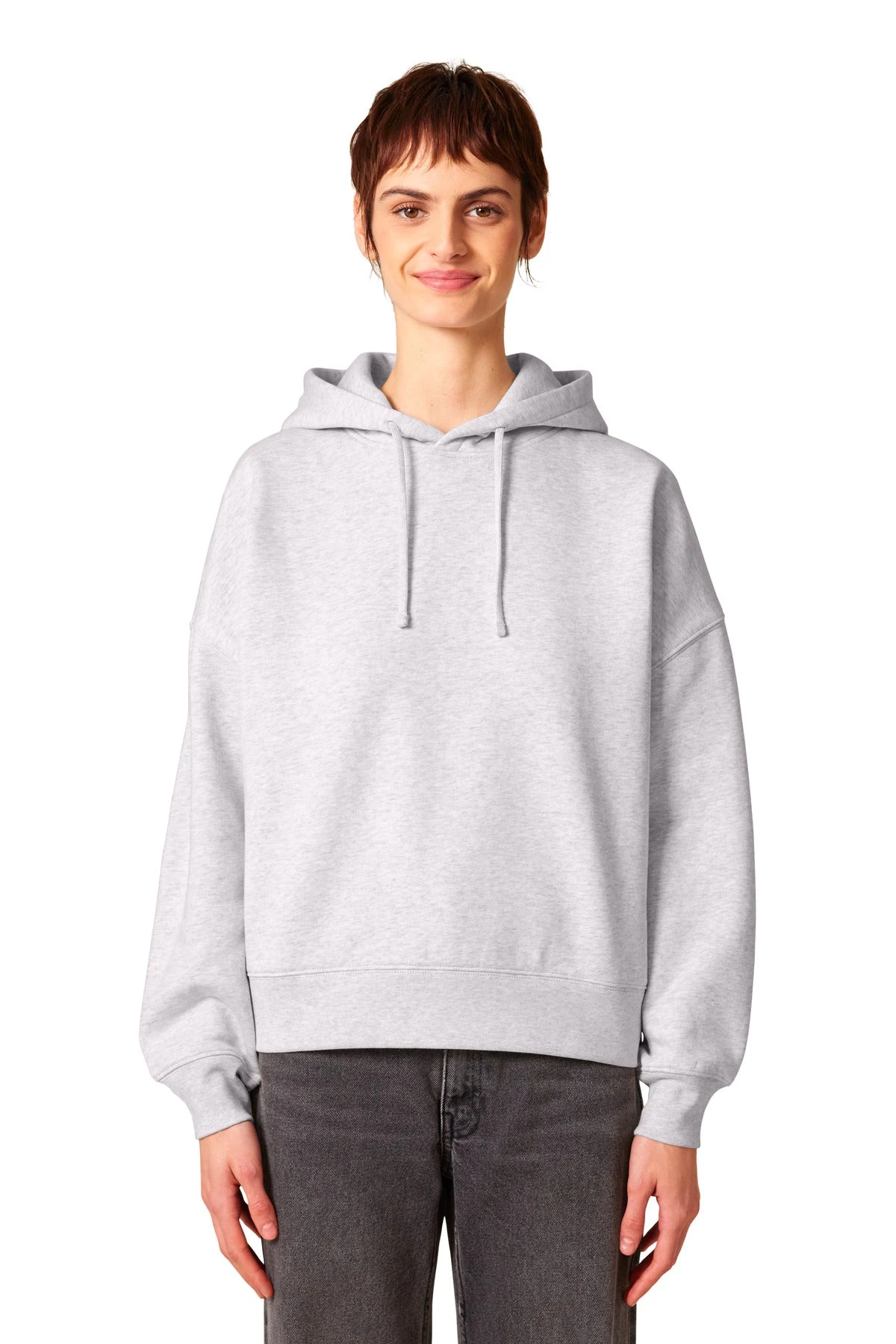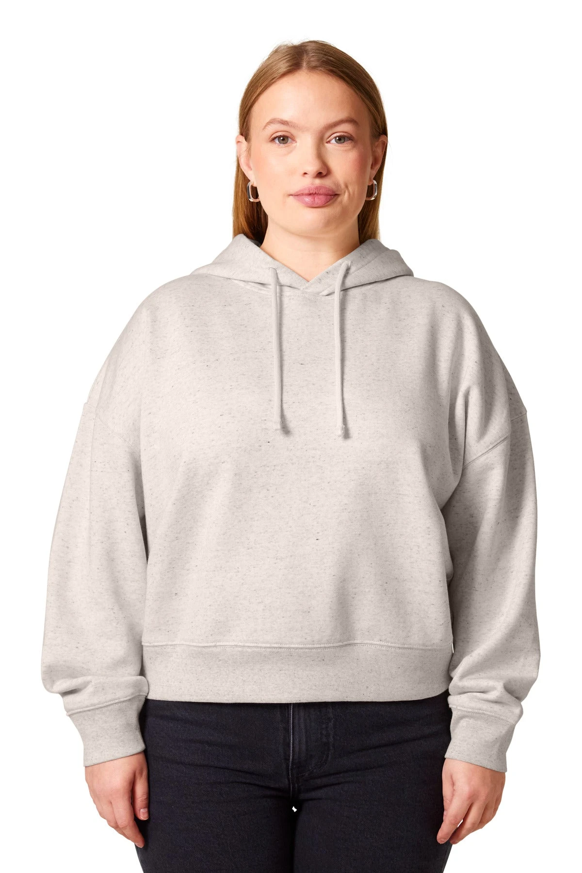A flattering hoodie with contemporary flair. An adjusted length and refined details add a feminine touch to this sustainably-made sweatshirt.