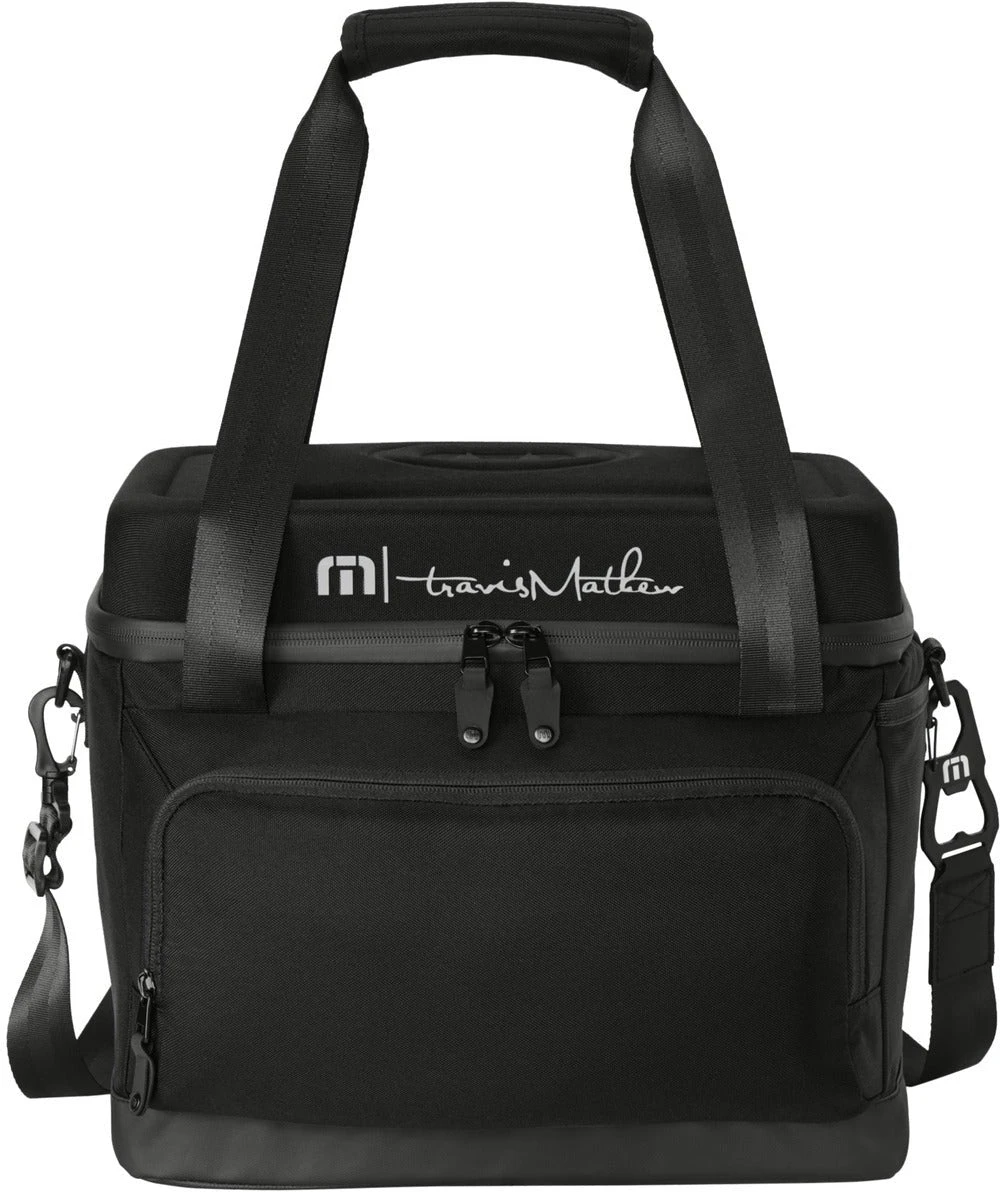 - Molded top panel with interior storage and heat transfer TravisMathew logo