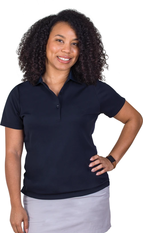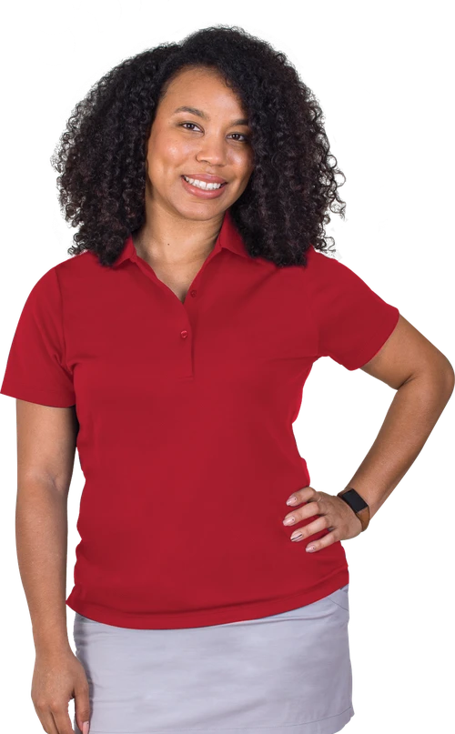 Champagne taste without the budget to match? 100% polyester mesh, moisture-wicking fabric looks and feels rich to the touch. Quality construction includes a no curl rib knit collar and three button narrow placket.