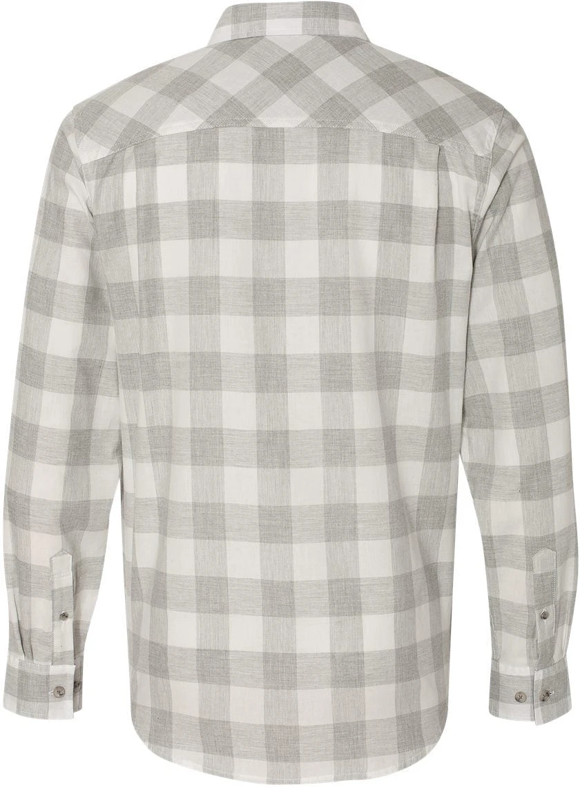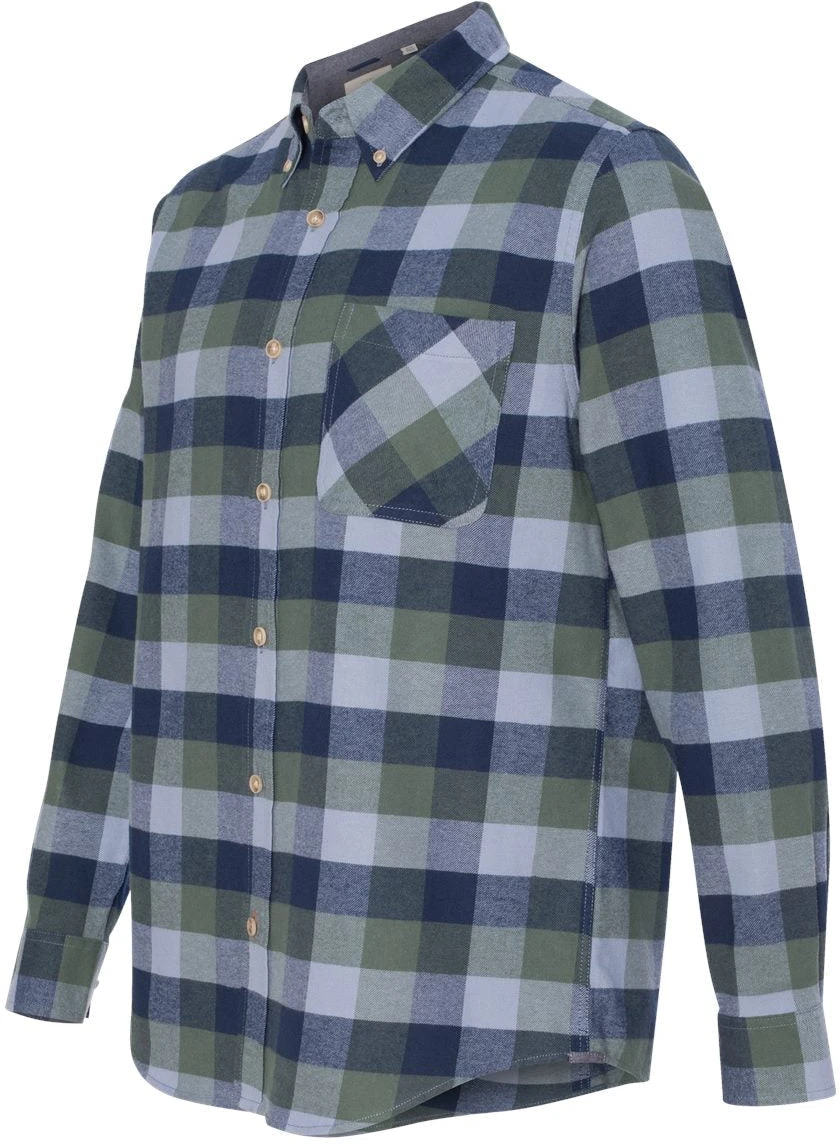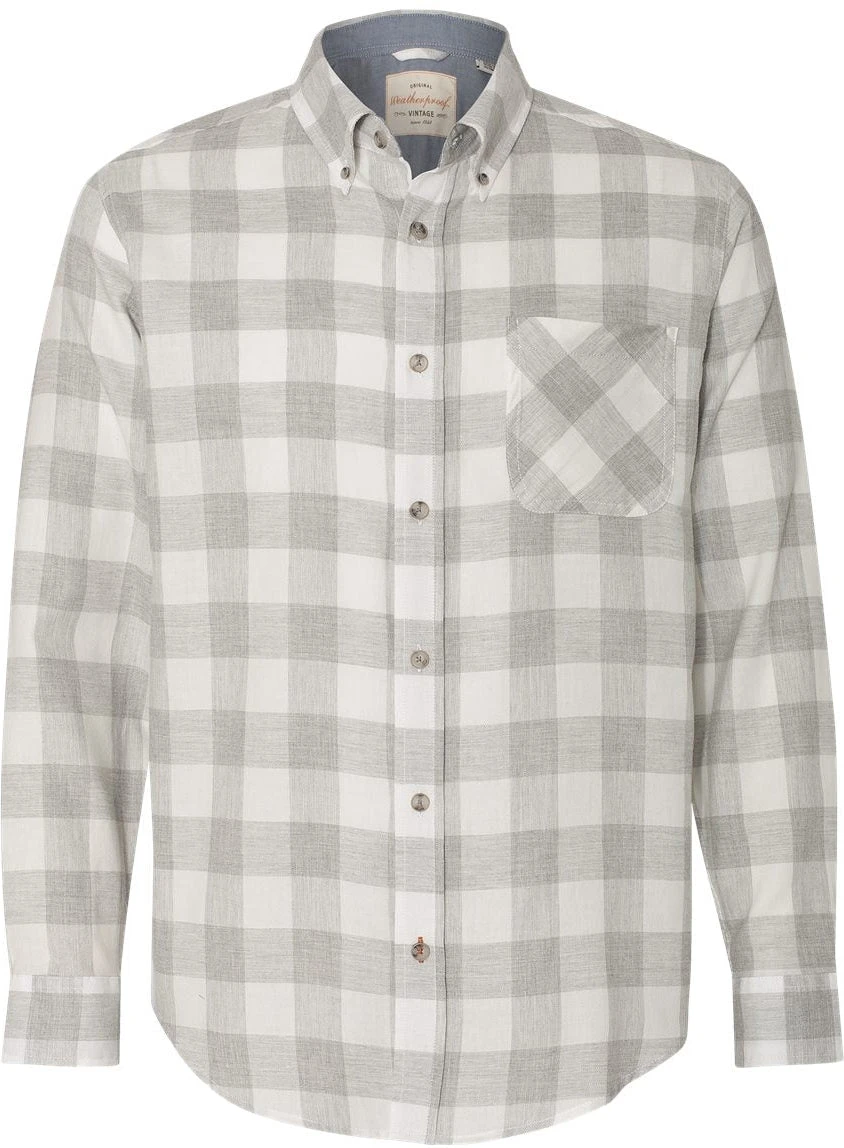 This Weatherproof Vintage Brushed Flannel Long Sleeve Shirt is the perfect choice for everyday wear. The long sleeved checkered patterned men’s dress shirt is made out of a one hundred percent cotton yarn dyed flannel with a cotton chambray trim. It features a single patch pocket with a shirttail hem. The shirt is available in a number of color schemes. It is exclusive weatherwash for softness.